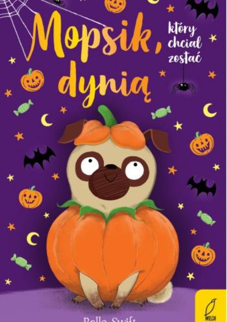 Mopsik ,który chciał zostać dynią to ciąg dalszy przygód kochanego przez dzieci mopsika Peggy. Tym razem piesek zostaje zaproszony na przyjęcie z okazji Halloween… jednak wcale nie ma ochoty brać w nim udziału! Dlaczego? Choć Chloe nie może się doczekać Halloween, jej suczka, Peggy, boi się czarownic, potworów i duchów! Zamiast paradować po ulicach miasteczka przebrana za dynię, najchętniej schowałaby się pod łóżkiem! Czy mały przestraszony mopsik pokona swoje lęki i dołączy do zabawy? [nota wydawcy].
